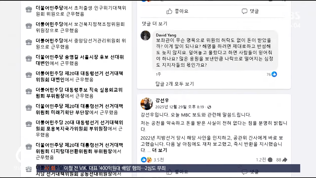 | 2025.12 | 공천헌금 녹취록 보도 |
