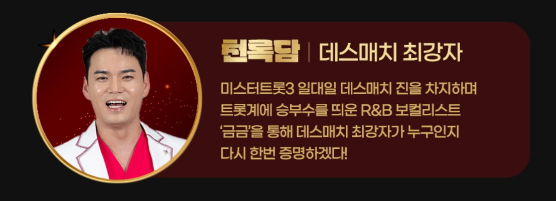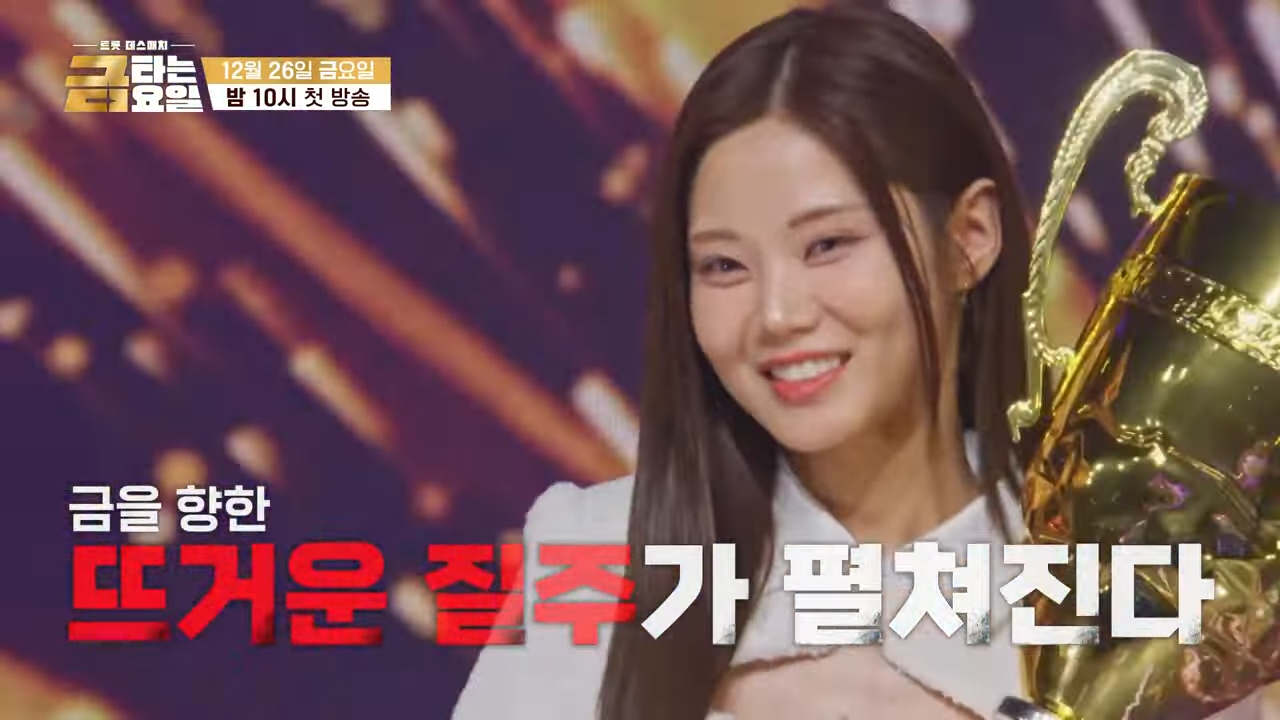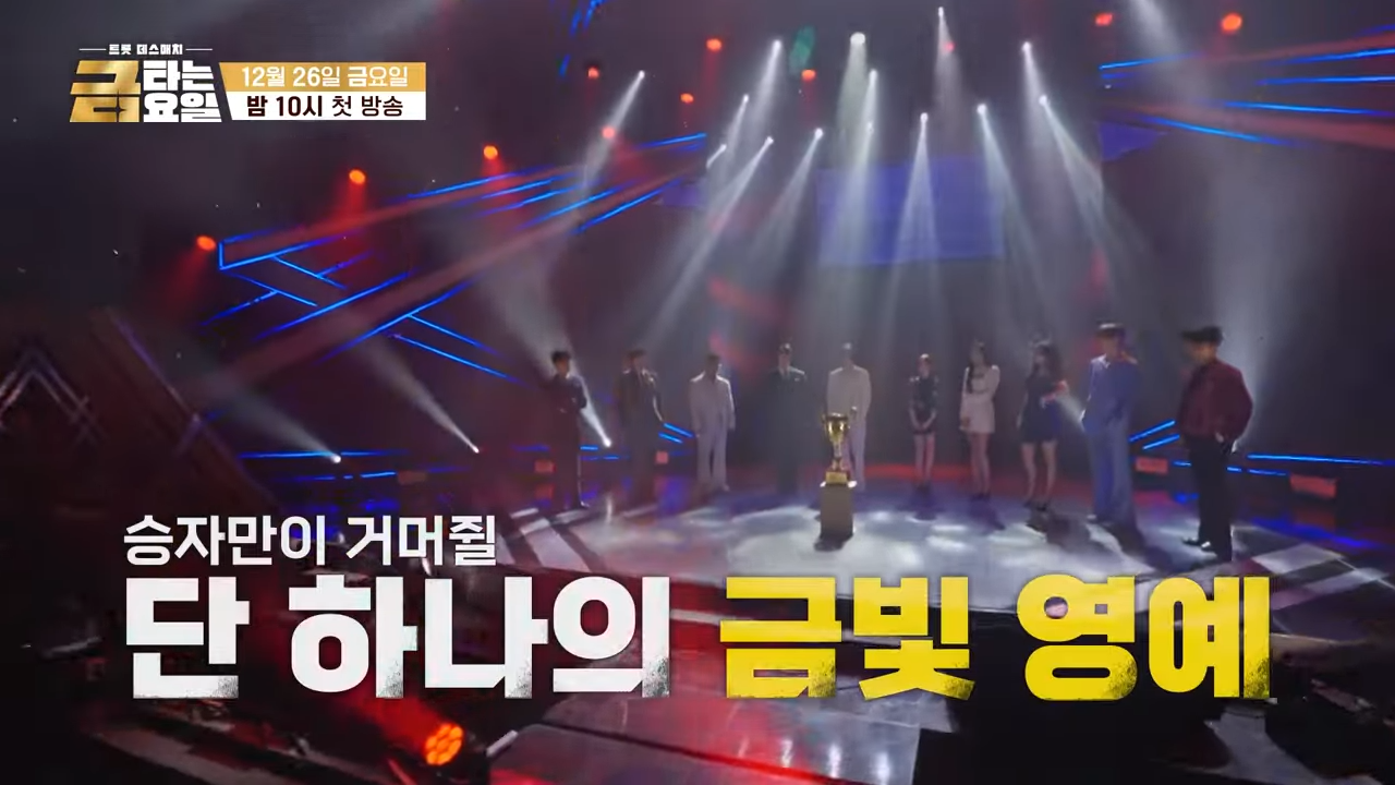 ‘금타는 금요일’은 TV조선이 새롭게 선보이는 트롯 데스매치 예능 프로그램입니다.
