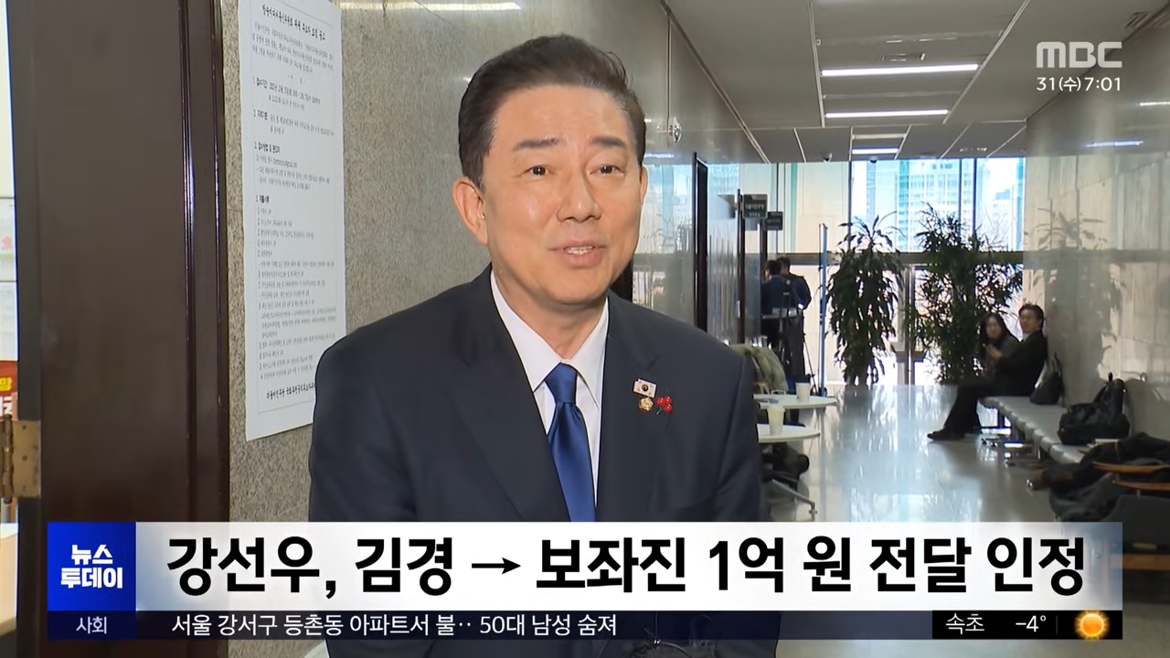 - 내용 요약: 강선우 의원과 김병기 의원 간 통화 녹취에서, 김경 시의원이 강선우 의원 측 보좌관에게 1억 원을 전달했다는 주장이 등장