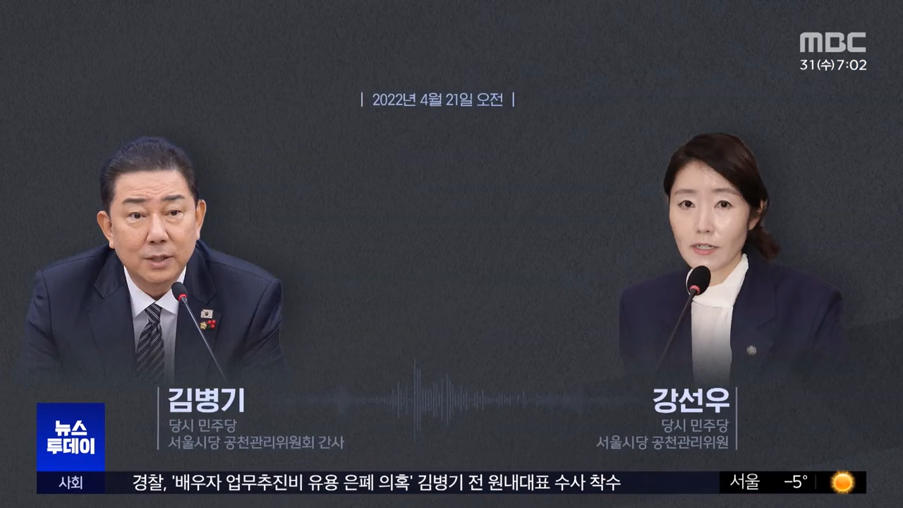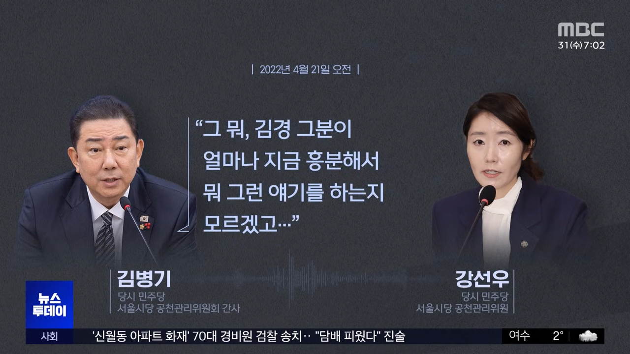 2025년 12월, 김경 시의원이 지난 지방선거에서 공천을 대가로 1억 원을 전달했다는 의혹이 MBC 보도를 통해 제기되었습니다.