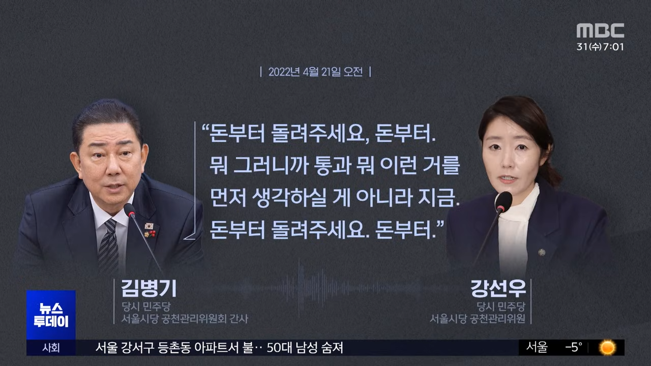- 제목: 민주당 공천 금품 수수 의혹…'1억 전달' 녹취 공개