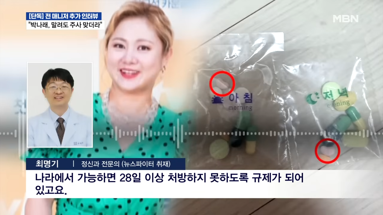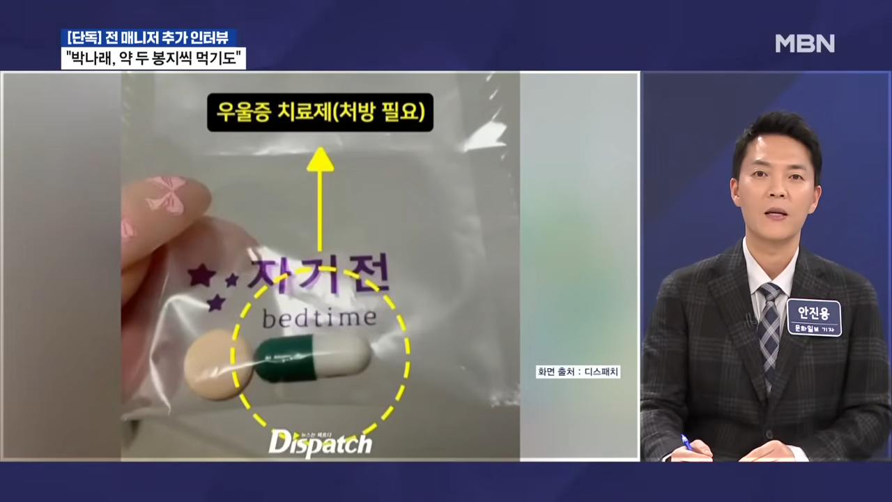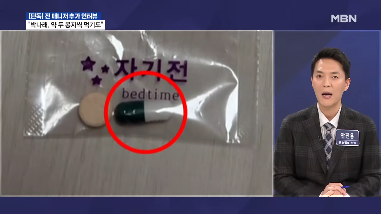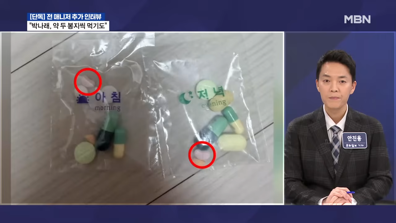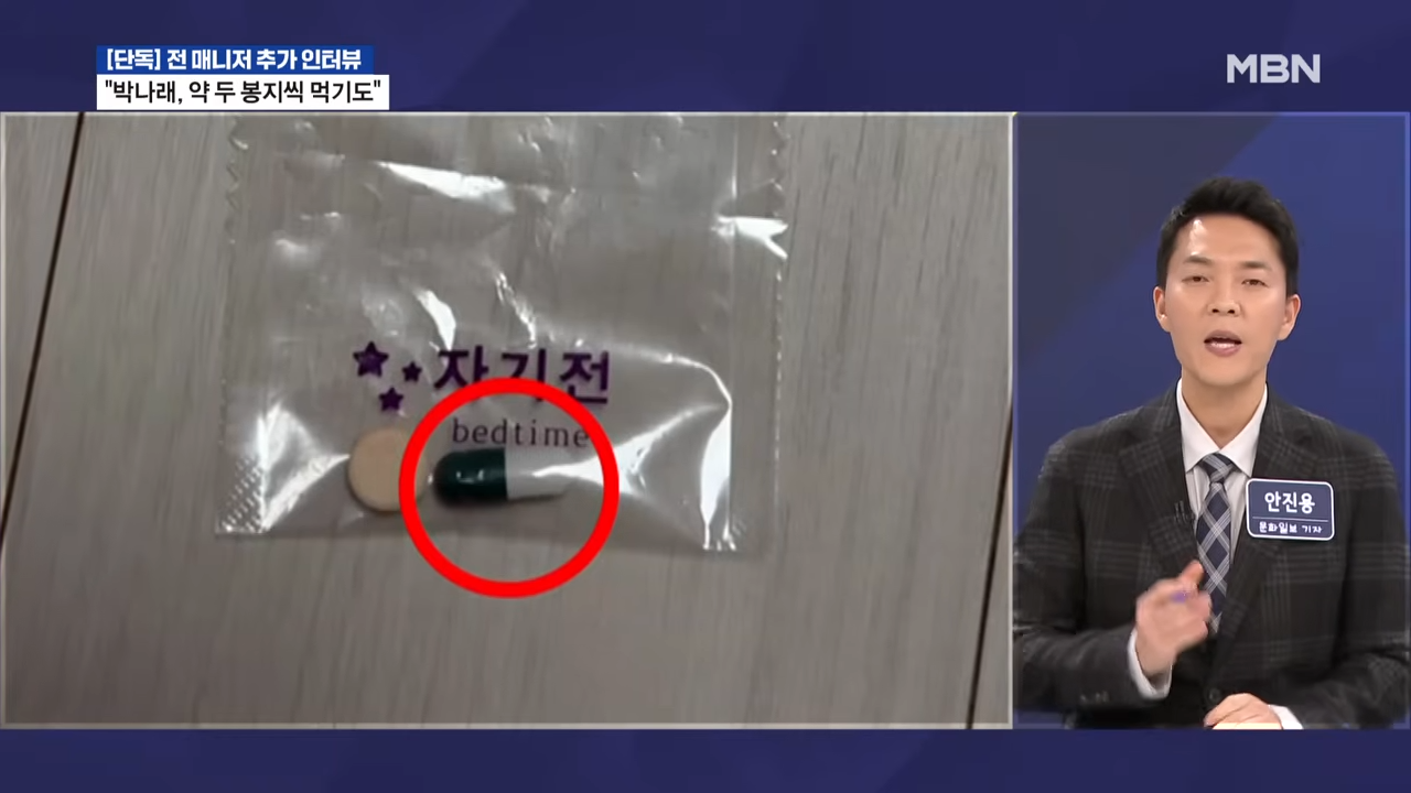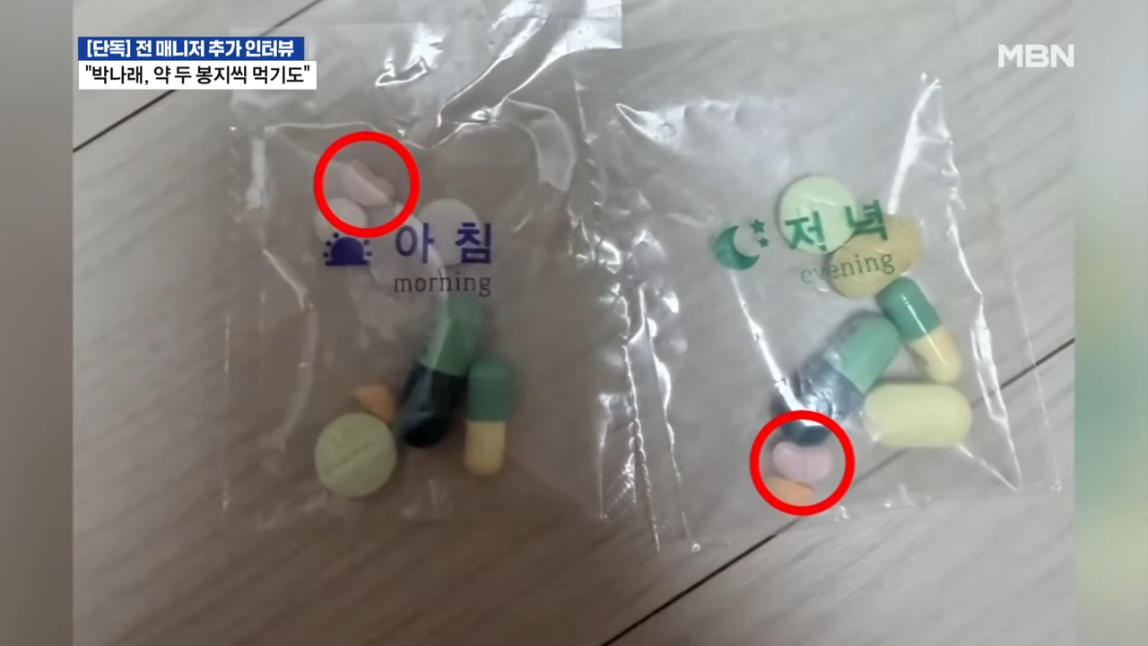 “박나래가 자기 전 약 두 봉지를 한꺼번에 복용하기도 했다.”