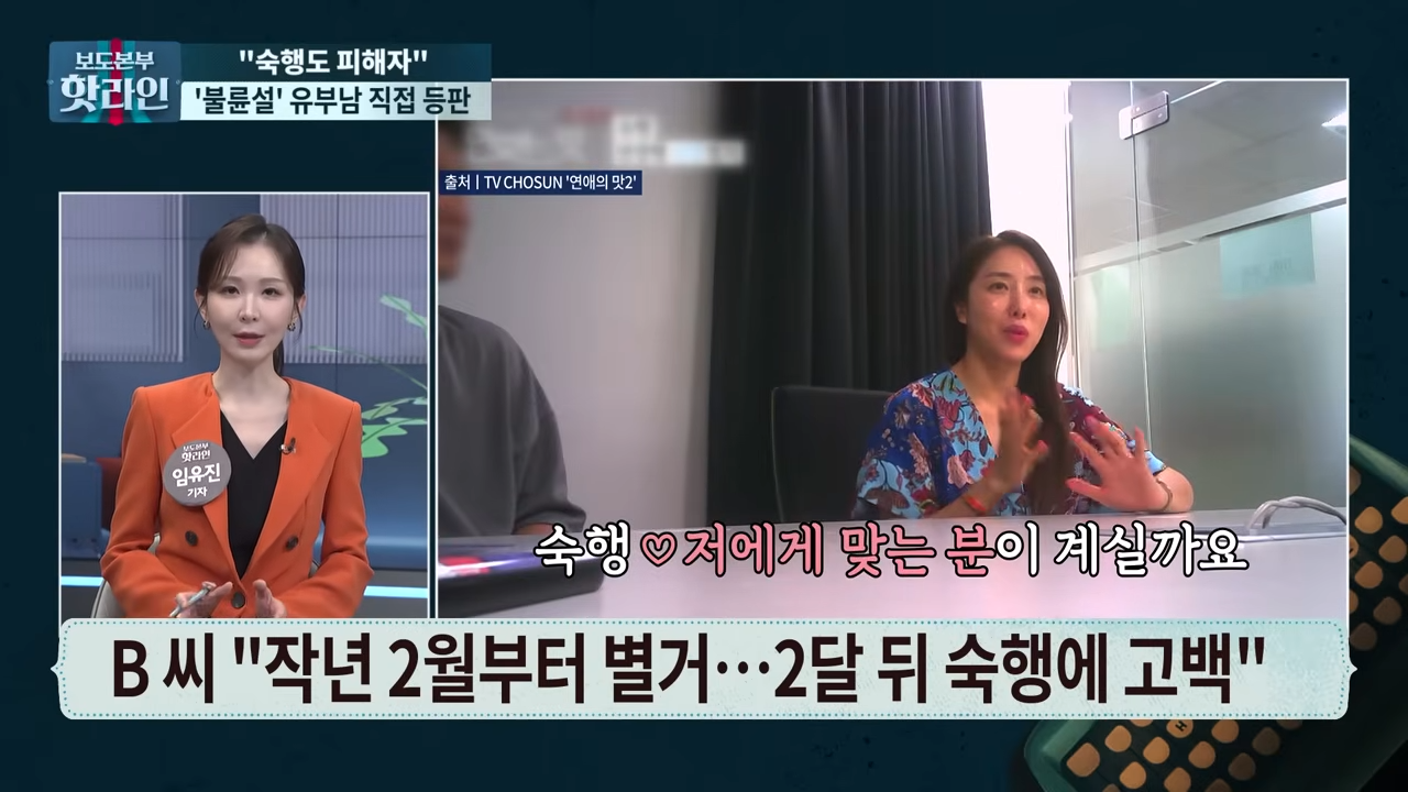 - “혼인관계는 이미 파탄 난 상태였고, 이혼 조정 중이었다. 숙행에게도 그렇게 설명했다”