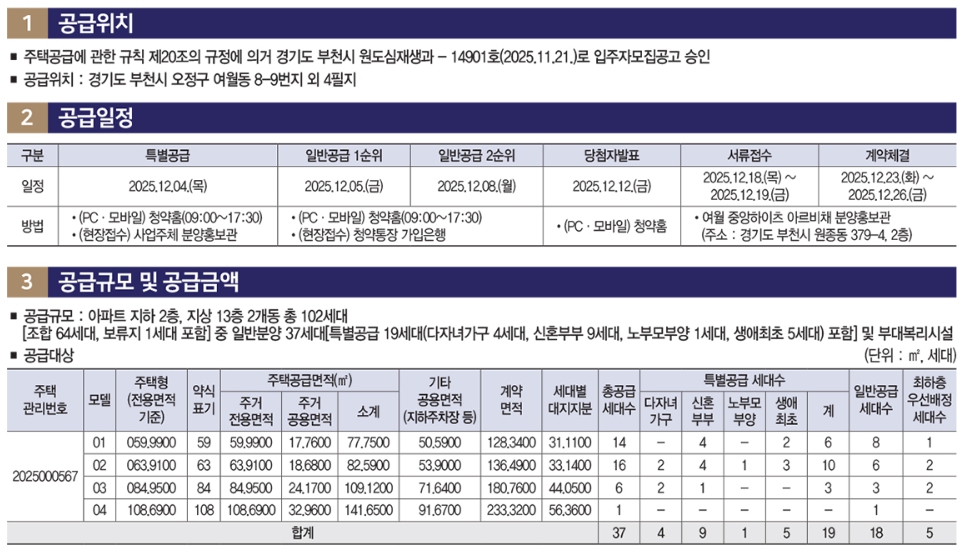 | 공급위치 | 경기도 부천시 오정구 여월동 8-9번지 외 |