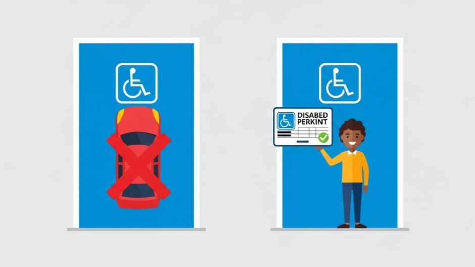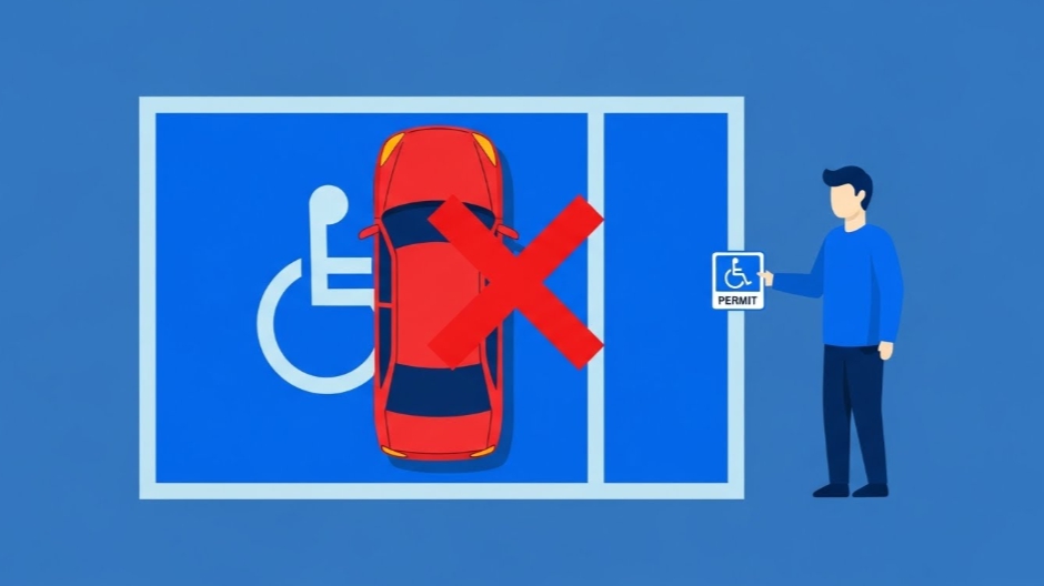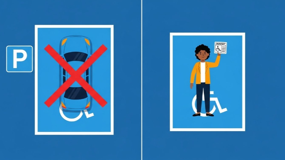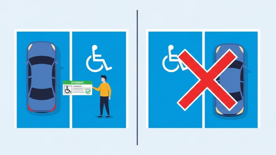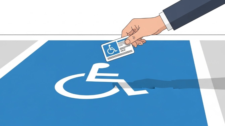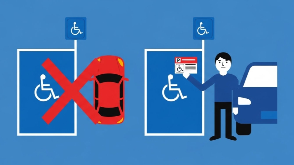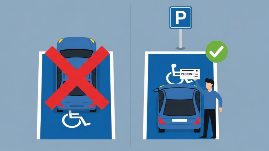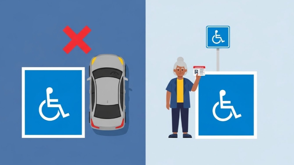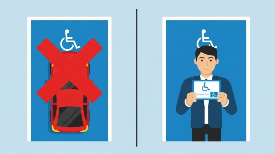 이 구역을 합법적으로 이용하려면 반드시 장애인 주차증(표지)를 발급받아 차량에 부착해야 합니다.