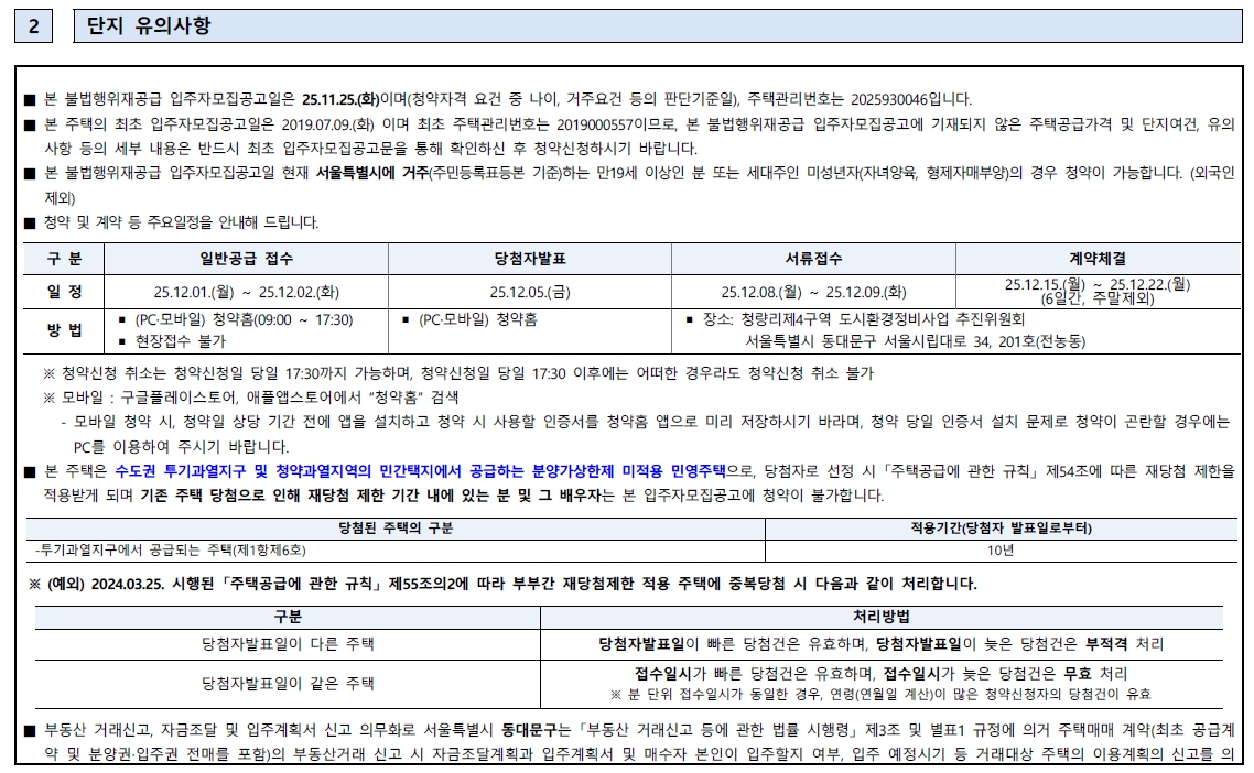 - 청약 접수: 2025.12.01(월) ~ 12.02(화)