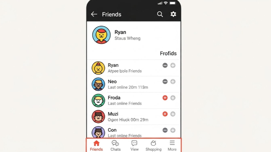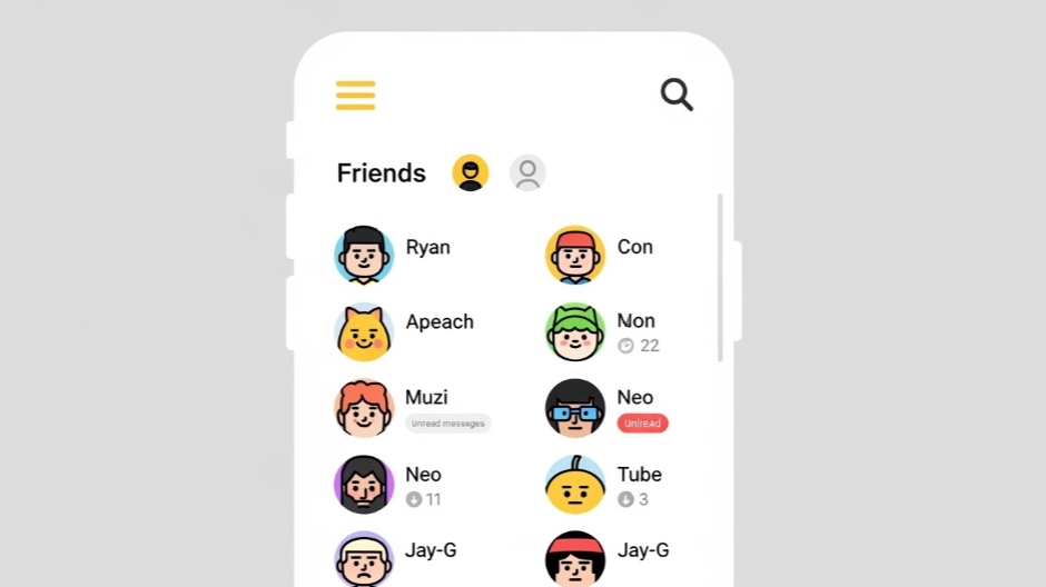 👉 ‘친구’ 탭 선택 → 목록형 화면 적용 완료!