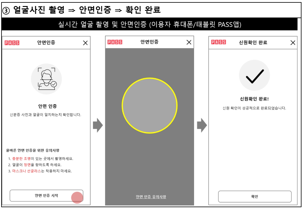 - PASS 앱 또는 웹 카메라로 얼굴을 인식